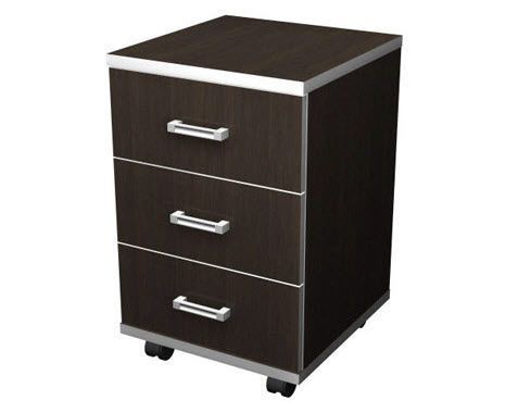Тумба подкатная на колёсных опорах из ЛДСП 16 мм. и имеет 3 выдвижных ящика на роликовых направляющих. Дно ящиков - ХДФ. Задняя стенка тумбы изготовлена из ЛДСП. Ручки металлические.