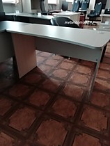 Офисный компьютерный стол ПСЭ2.12 с эргономичной столешницей. На столешнице есть розетка кабельного канала. Углы столешницы скруглены, что удобно в эксплуатации и обеспечивает безопасность. Стол письменный можно дополнить приставными модулями и тумбами серии ПроОфис