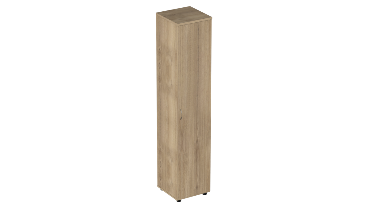 Шкаф офисный Р.П-3 серии Референт имеет одну глухую дверь, внутри распроложены полки на которые можно разместить офисные папки формата А4. Мебель изготовлена из высококачественного ЛДСП. Узкий закрытый пенал хорошо сочетается с другими шкафами серии Референт.