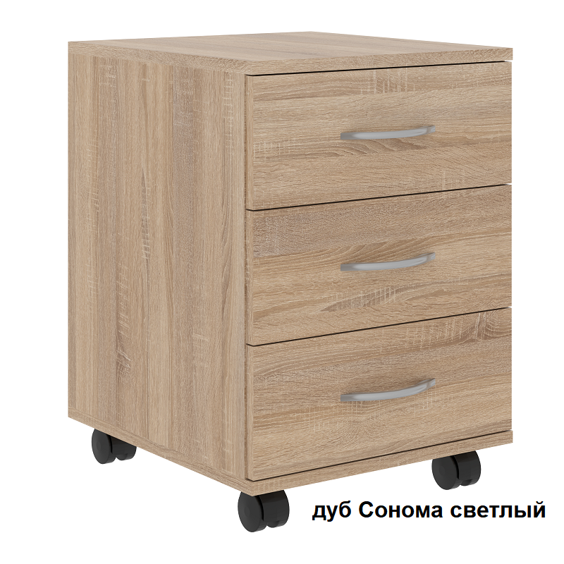 Мобильная тумба SC-3M состоит из 3 -х выдвижных ящиков. Тумба на колёсах выполнена в современном и лаконичном дизайне. Тумба выполнена из ЛДСП 16 мм., задняя стенка ХДФ 3,2 мм., ящики-фолдинги из ЛДСП 12 мм. Ящики и металлические ручки выполнены в сером цвете. Каждый ящик выдерживает нагрузку до 5 кг.