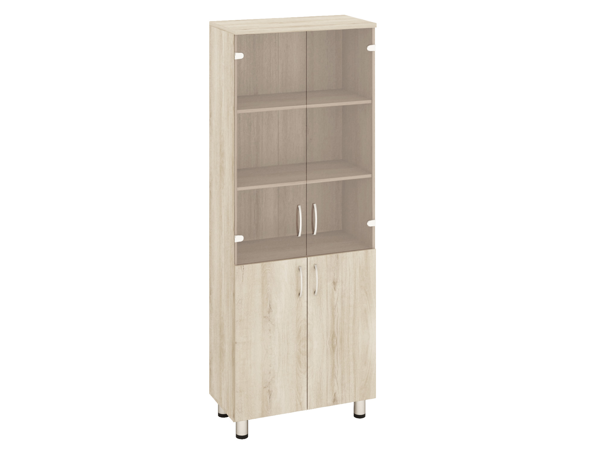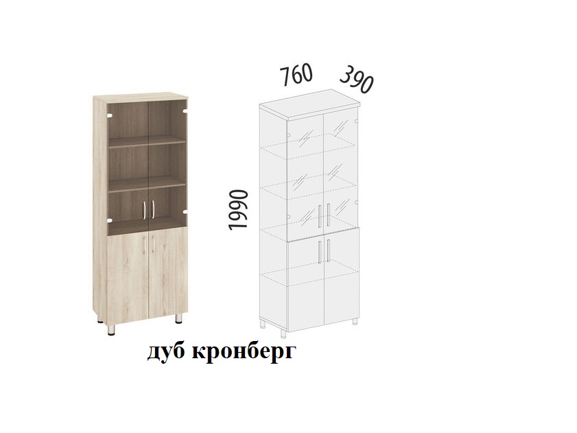 Корпус изделия выполнен из ЛДСП повышенной прочности толщиной 16 и 22 мм. Благодаря высокой плотности выдерживает многократную сборку. Прочные петли и ручки надёжно крепятся к стеклу. Шкаф имеет регулируемые по высоте опоры.