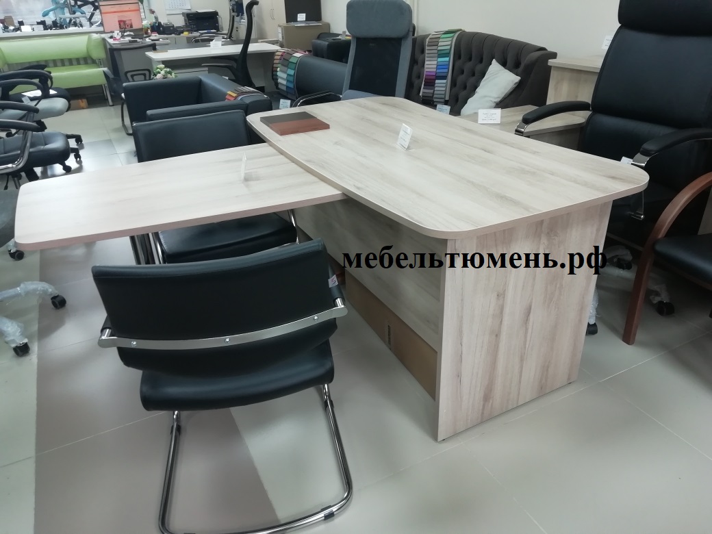 Приставка к столу руководителя с комфортными местами для посетителей позволяет проводить встречи и переговоры в удобной и профессиональной обстановке.