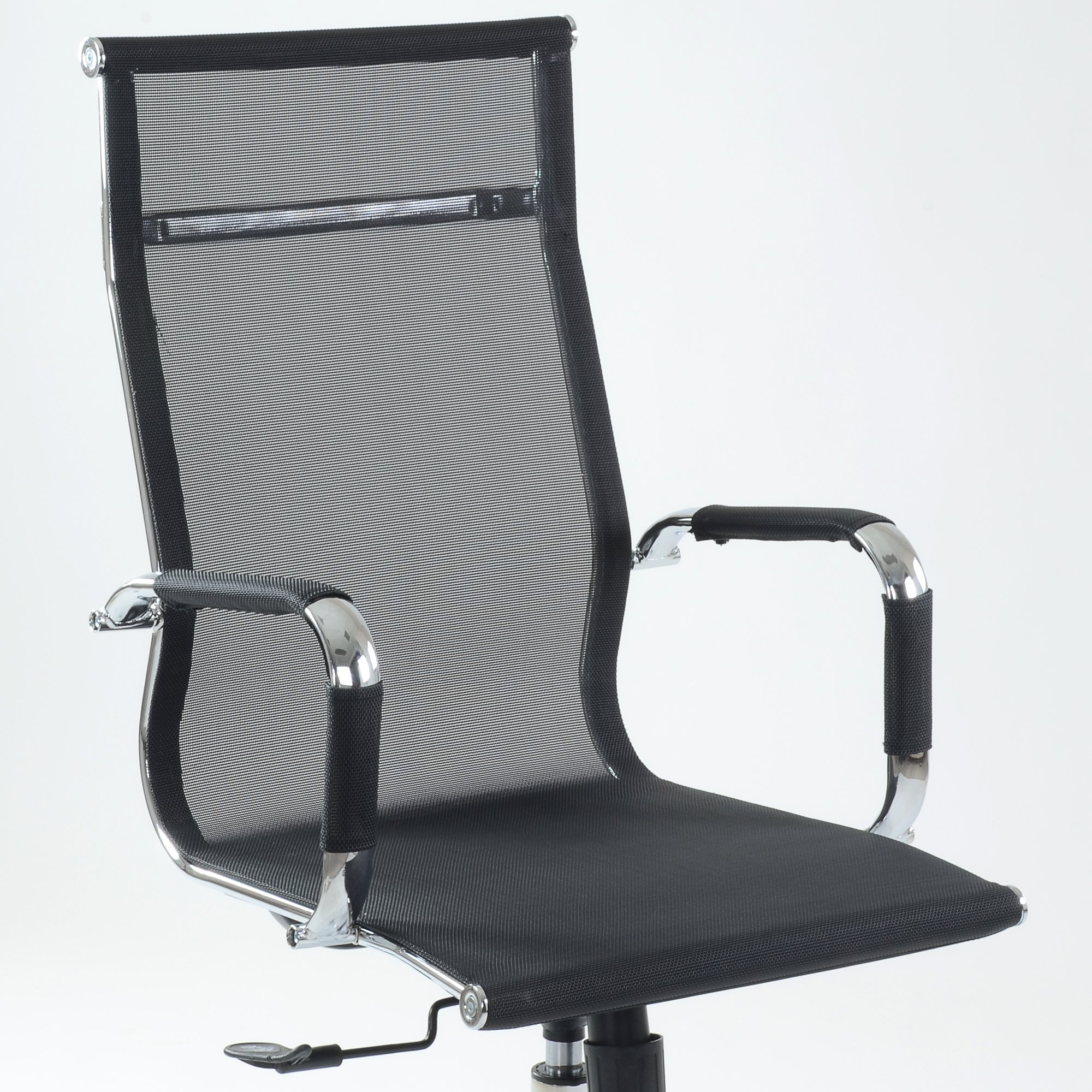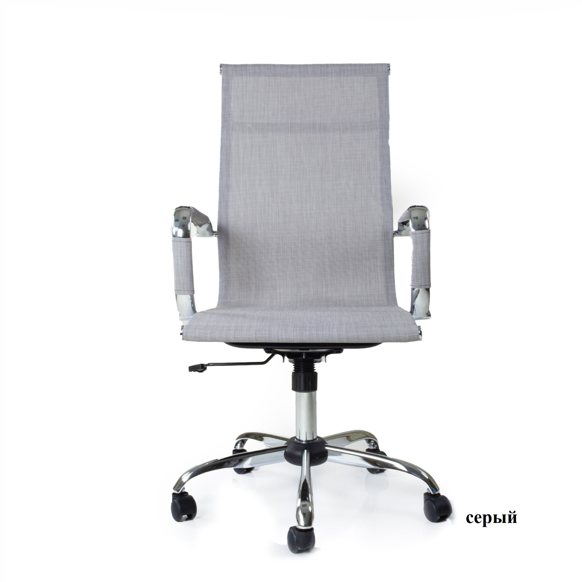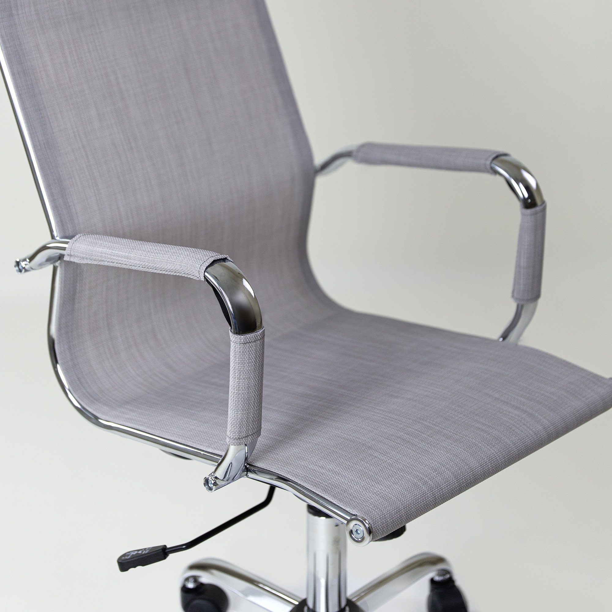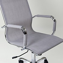 Кресло компьютерное для персонала К-111Н снабжено поворотно-подъёмным механизмом газ-лифт и механизмом качания топ-ган с фиксацией в рабочем положении. Подлокотники хромированные нерегулируемые, с мягкими накладками. Металлический каркас кресла обит дышащим материалом - ткань-сетка