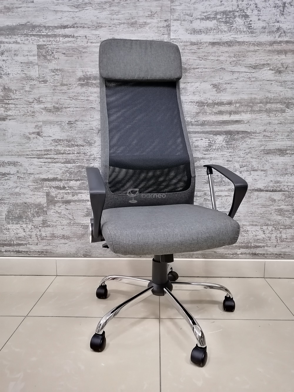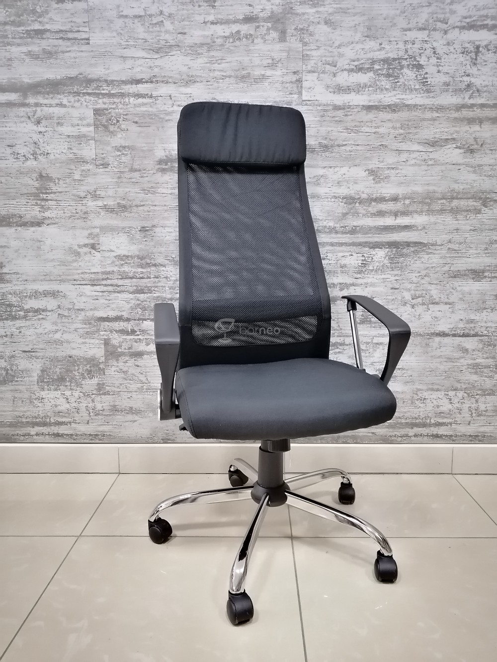 Кресло для персонала с высокой спинкой. Кресло снабженое подлокотниками. Основание металлическое хромированное.