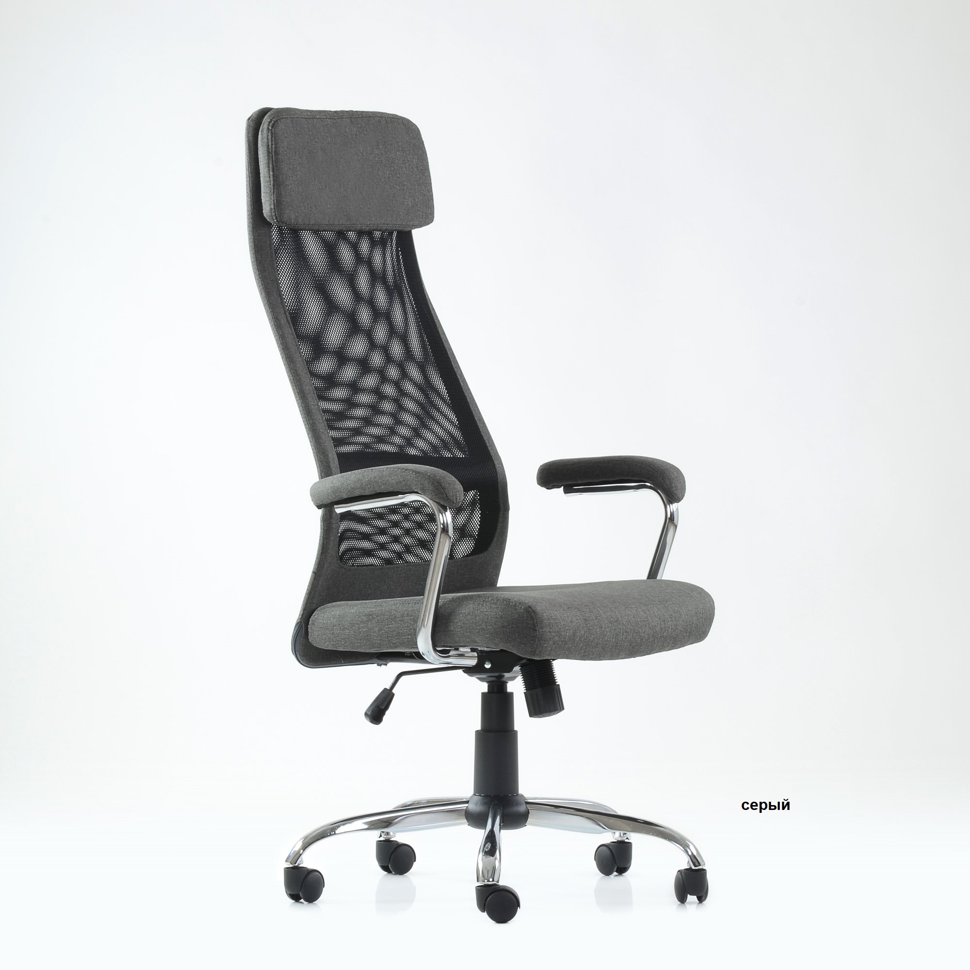 Эргономичное офисное кресло К-115 ткань/ткань-сетка чёрная, серая