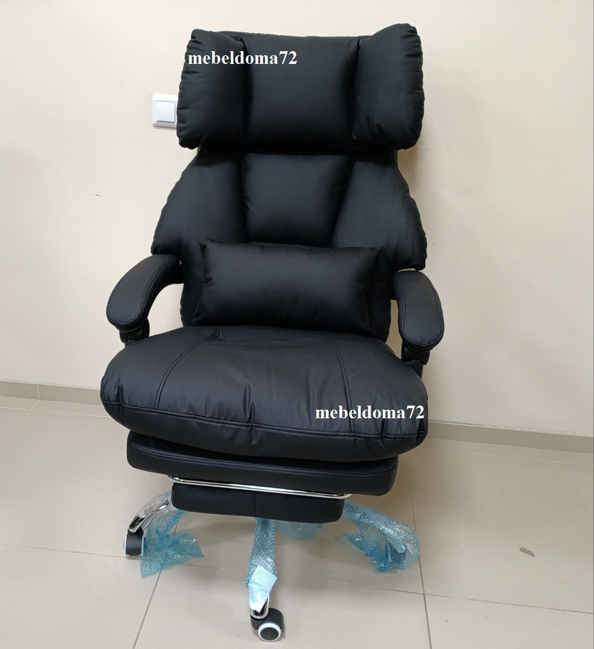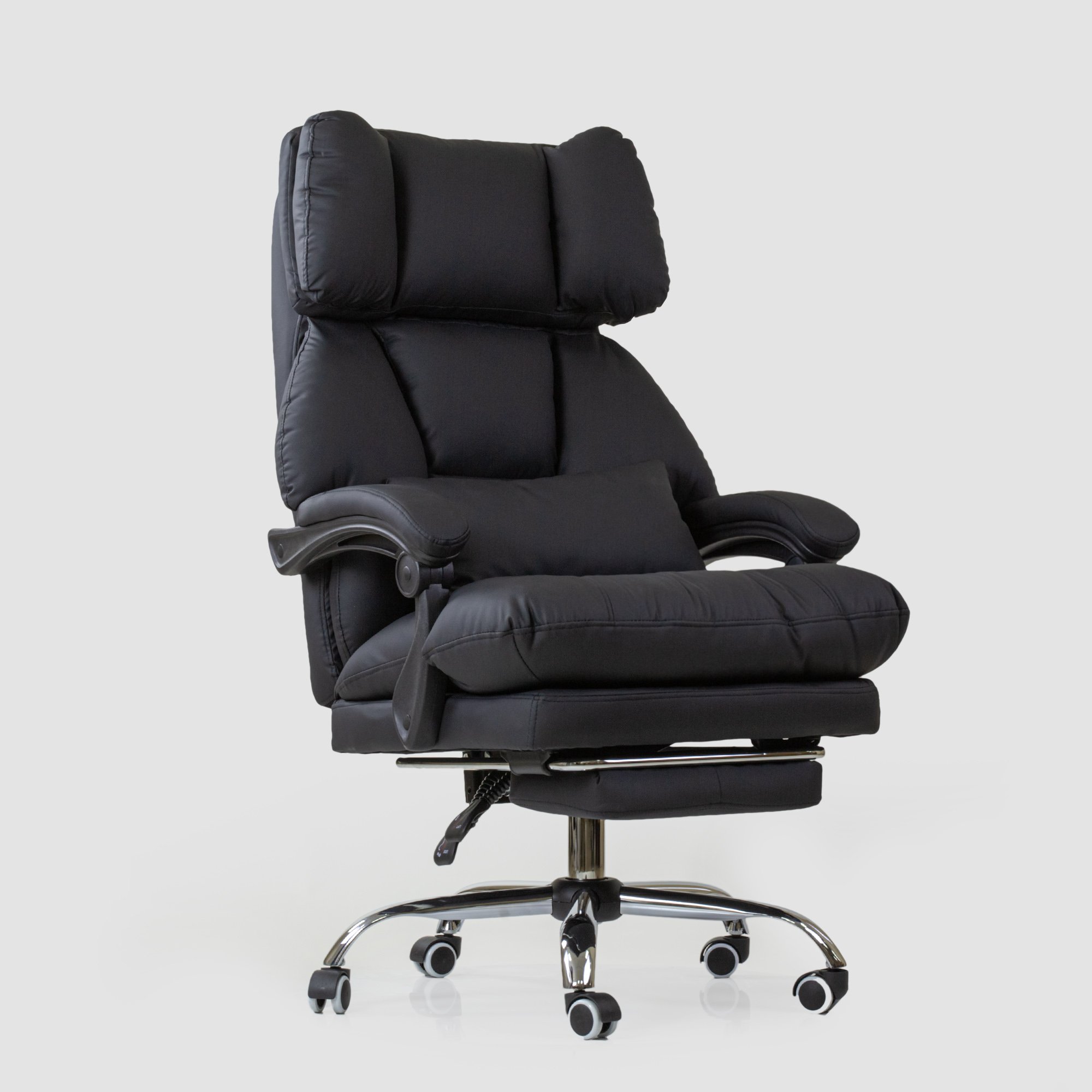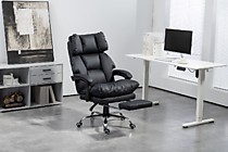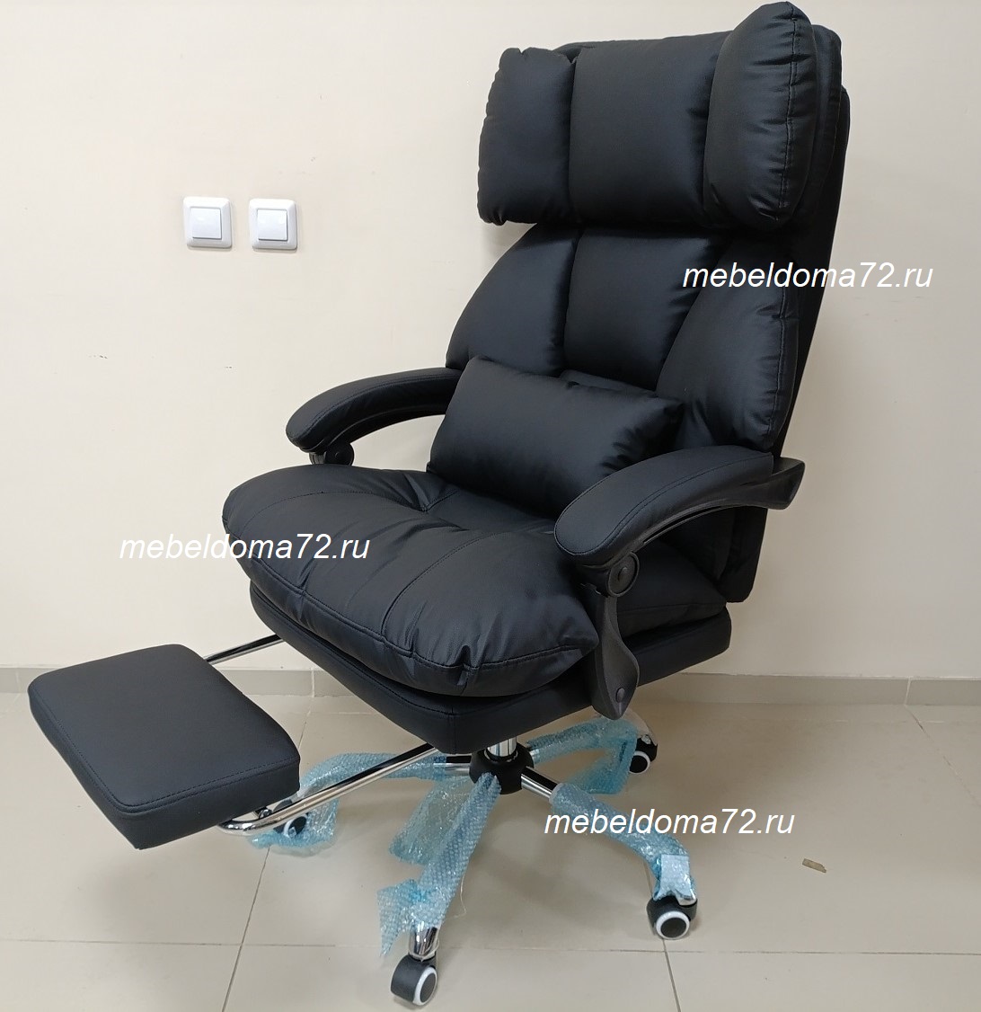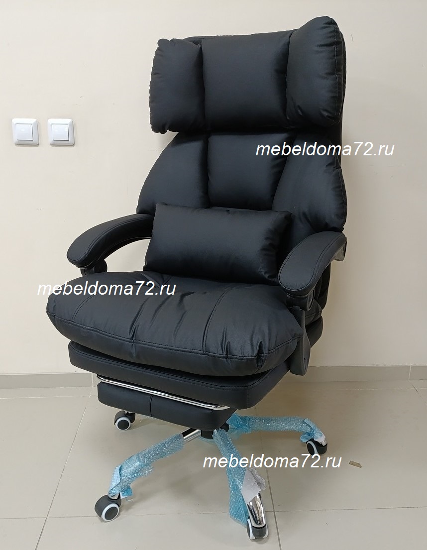 Солидное кресло руководителя оснащено выдвижной подножкой и подушкой свободного размещения. Кресло имеет поворотно-подъёмный механизм газ-лифт и механизм регулировки наклона спинки. Мягкие подлокотники нерегулируемые, подвижные. Высота сиденья от пола 450-510 мм. Высота спинки 710 мм. Размеры сиденья внутренние 530х510 мм. Крестовина металлическая имеет диаметр 700 мм., ролкики нейлон прорезиненные для ламината и паркета