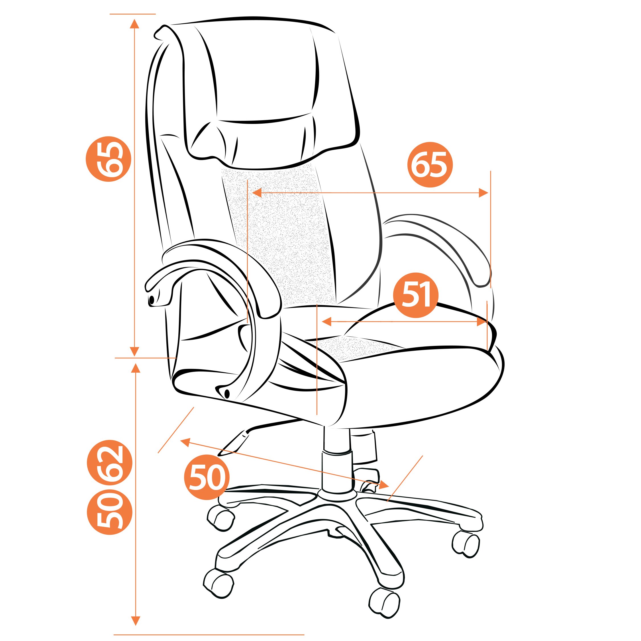 Уникальное компьютерное кресло OREON добавит интерьеру офиса или дома презентабельность, грациозность и утончённость. Изысканный дизайн, роскошный внешний вид и функциональность позволят использовать модель в любом рабочем кабинете. Каркас из фанеры толщиной более 10 мм. надёжен, прочен и долговечен. Сиденье и спинка с наполнителем из пенополиуретана (до 35 кг/м3 ) стандартной плотности не теряют форму напротяжении длительного времени, не пропускают воздух. Офисное кресло регулируется по высоте и наклону с фиксацией в одном положении. Жёсткость механизма качания настраивается с помощью специального барабана. стальная разборная крестовина диаметром 700 мм., покрыта чёрной порошковой краской, устойчива, прочна и долговечна.Высококачественные прорезиненные ролики из полиуретана с прорезиненными вставками не царапают поверхнсоть. Обивка кресла выдерживает до 50 000 циклов на истирание по Мартиндейлу. Требуется простая сборка по прилагаемой инструкции.