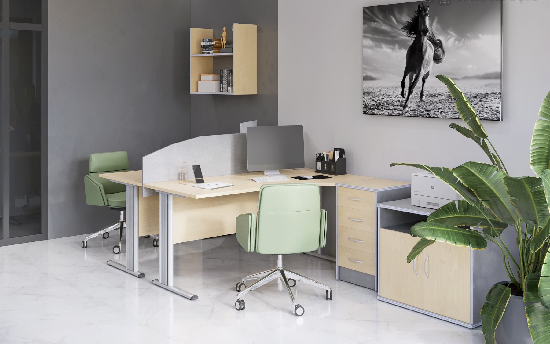 Комплект офисной мебели для организации 2 рабочих мест с разделительным экраном. Комплект можно дополнить, смотрите по ссылкам: Imago/ imago-m/