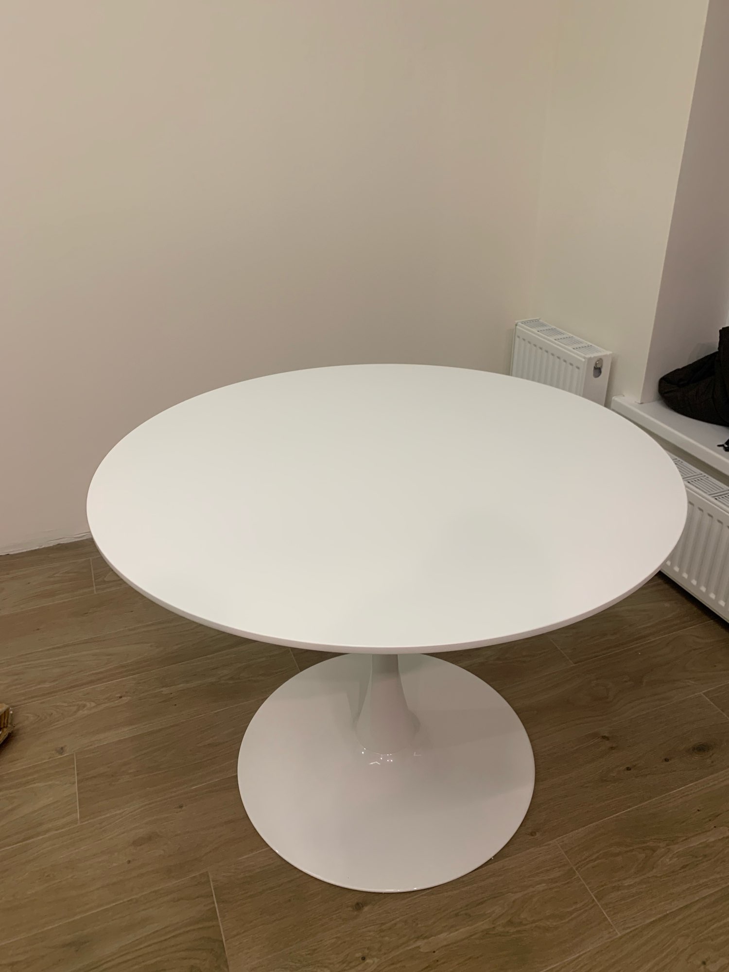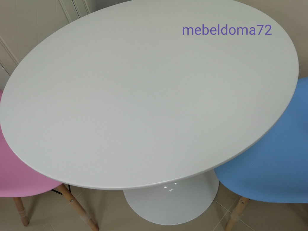 - Стол обеденный Т-3 имеет столешницу из МДФ толщиной 16 мм. и диаметром 800 мм. Опора стола металлическая, диаметр диска опоры 50 см. Диск снабжён кольцом из пластика для сохранности пола.