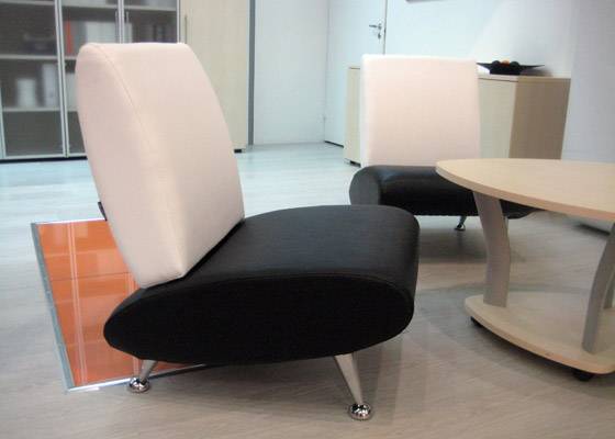 Оригинальная мягкая мебель для офиса без подлокотников. Высокие опоры, высота 200 мм.. Высота сидения над полом 390 мм.. Широкий выбор обивочных материалов для офисного дивана Блейк.