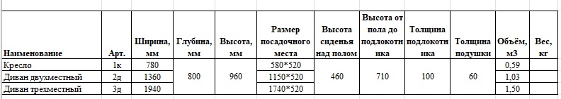 Цена указана в обивке 1 категории.