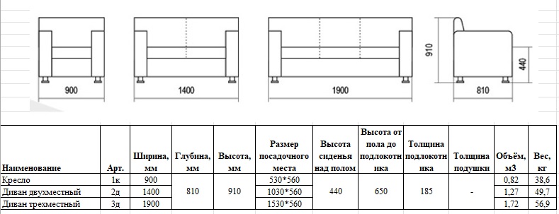 Диван 3-местный 3Д 1900х810х910 мм 1 категория 24 000 руб
