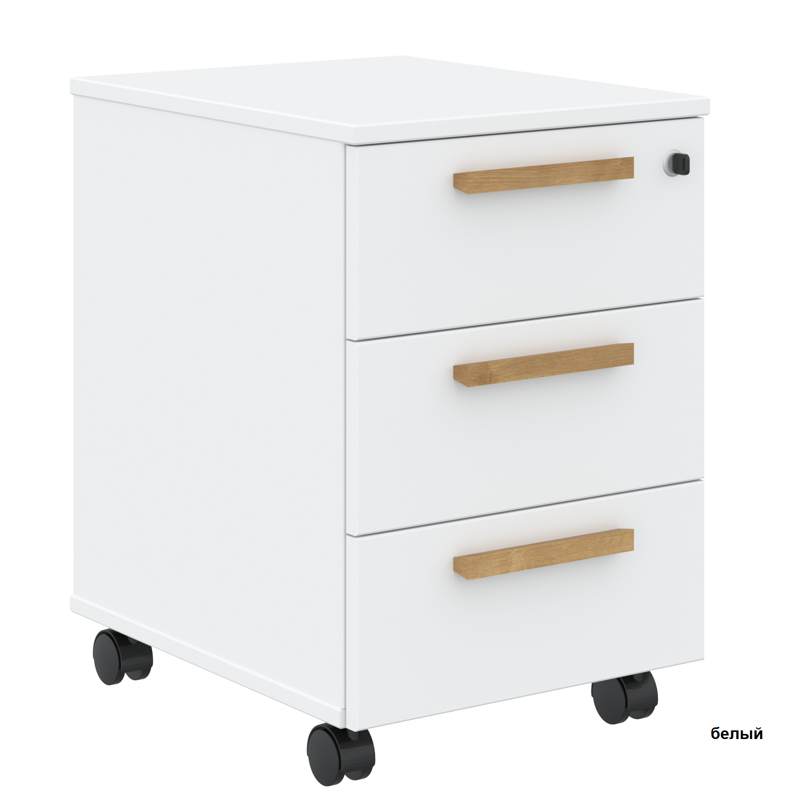 Подкатная тумба Forta FMC-3D комплектуется колёсными опорами - 2 со стопорами и 2 без стопоров. В ящиках фолдинг и дно белого цвета. Ручка накладная из массива бука, отделка - масло-воск.