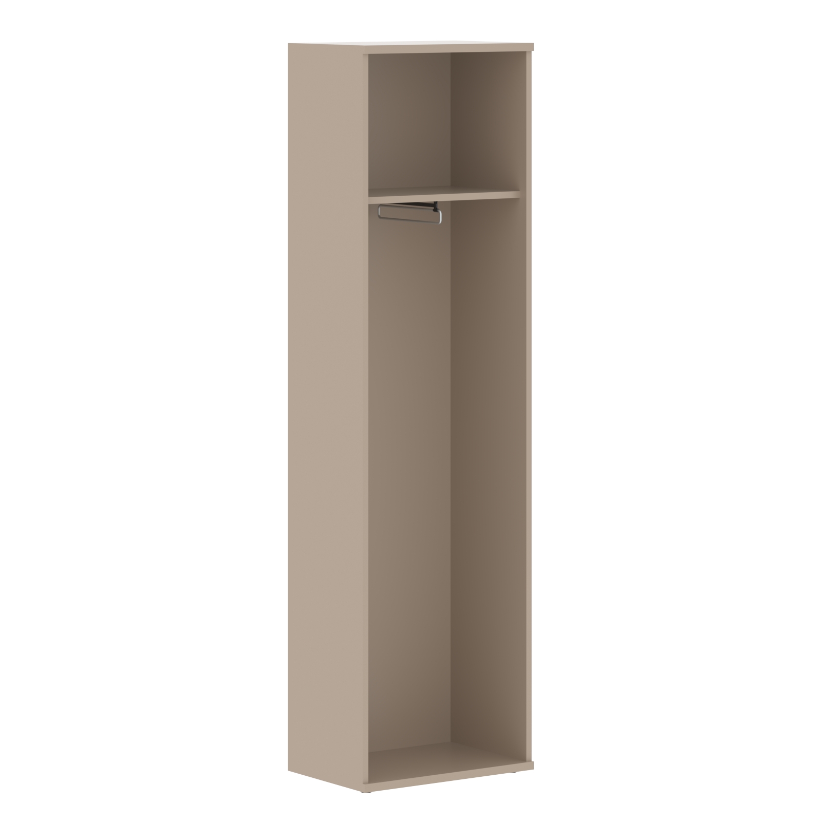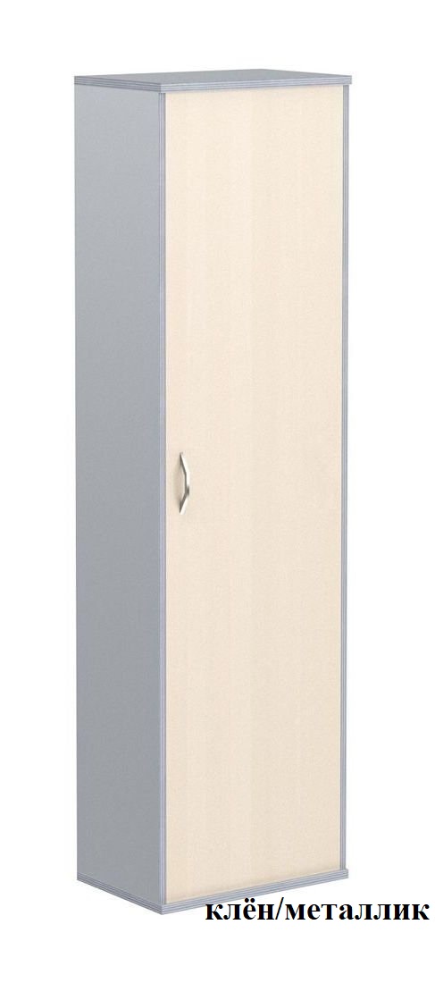 Шкаф для одежды одностворчатый ГБ-1 серии Имаго. Внутри выдвижная штанга и полка для головных уборов. Шкаф оснащён регулируемыми опорами для компенсации неровностей пола.