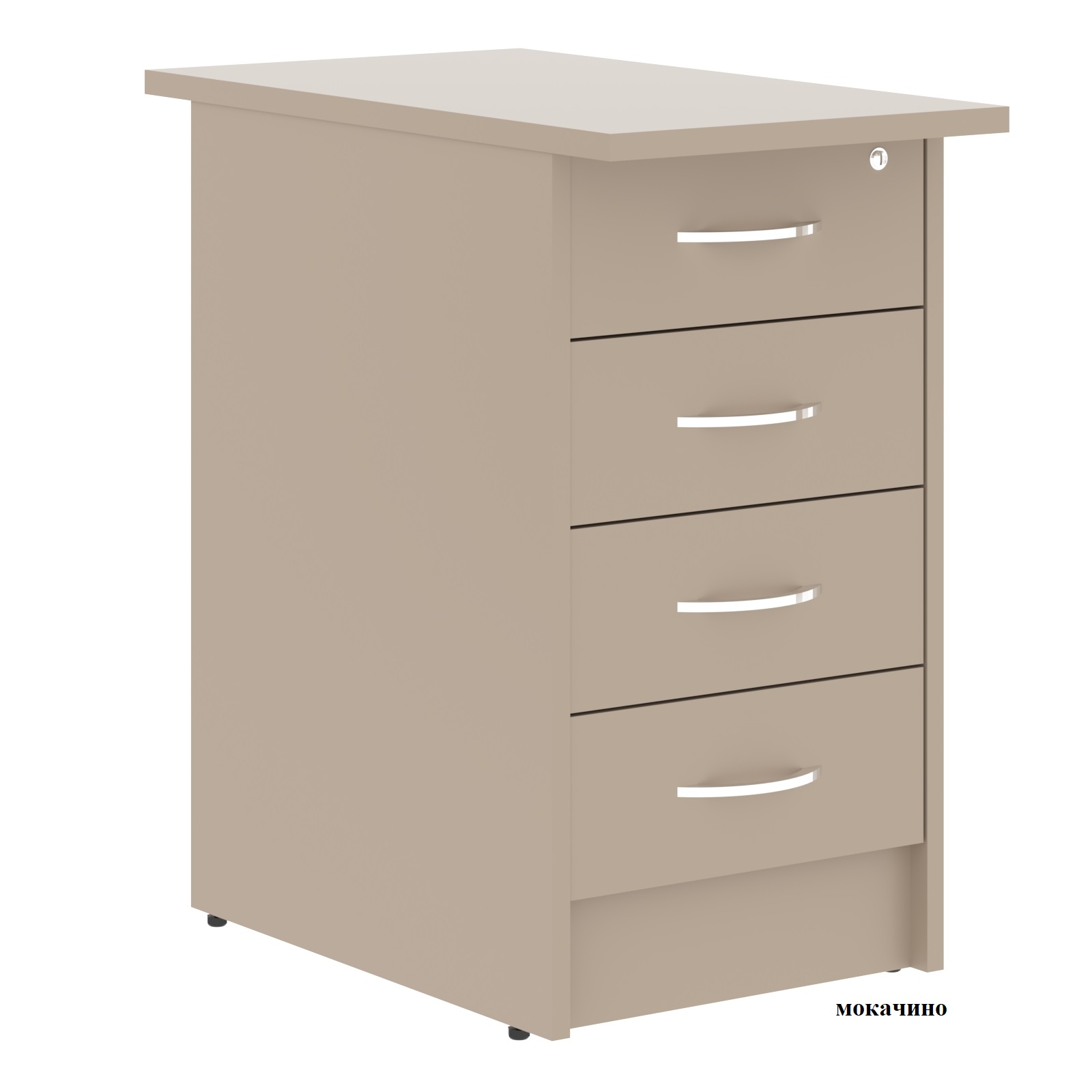 Приставная тумба ПТ-4.2А серии IMAGO имеет 4 выдвижных ящика-фолдинга размером 400х345х400 мм. цвет серебро, ручка скоба металлическая, цвет серебро. Верхний и нижний щит изготовлены из ЛДСП 22 мм., фасад из ЛДСП 18 мм., кромка ПВХ 2 и 0,4 мм. Задняя стенка ЛДСП. Опоры регулируются по высоте. Тумба используется как самостоятельный предмет мебели и как дополнение к столам СА-1 и СА-2 серии Имаго.