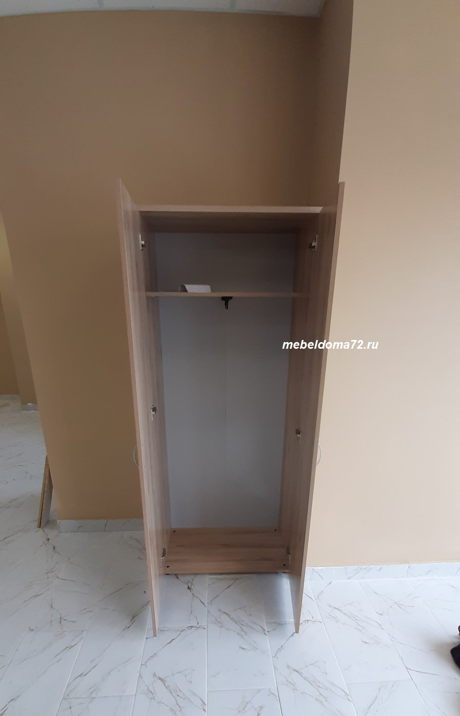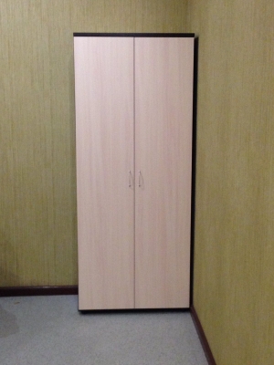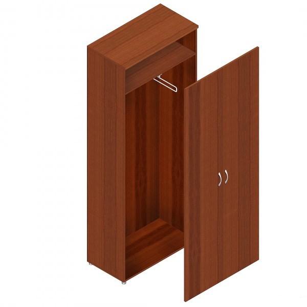 Шкаф для одежды двухстворчатый Р.Ш-5 серии Референт. Внутри полка для головных уборов и выдвижная штанга для плечиков. Распашнфе дверцы укомплектованы металлическими ручками. Опоры регулируемые по высоте. Гардероб хорошо сочетается с системами хранения серии Референт.