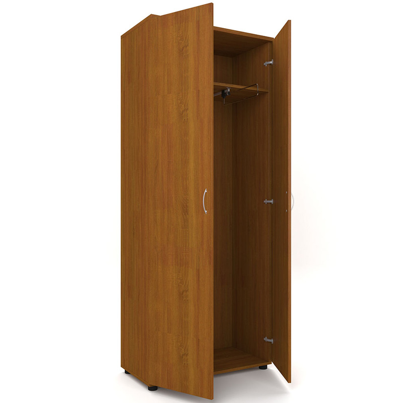 Шкаф комбинированный для одежды Р.Ш-8 серии Референт разделён на 2 секции. Шкаф комплектуется боковыми полками и выдвижной штангой для плечиков, есть атресольная полка для головных уборов. Офисный шкаф оснащён регулируемыми опорами и металлическими ручками.