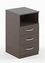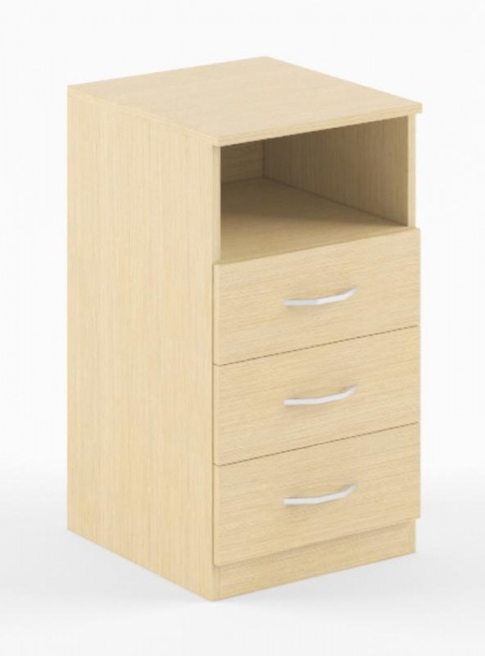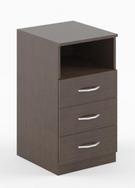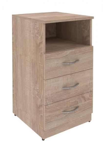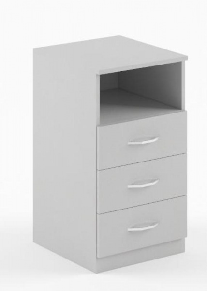 Тумба приставная SC-3D.1 серии SIMPLE. состоит из 3-х выдвижных ящиков и ниши. Задняя стенка ЛДСП, корпус выдвижных ящиков серого цвета. Тумба может бытьдополнением к угловым столам серии Симпл