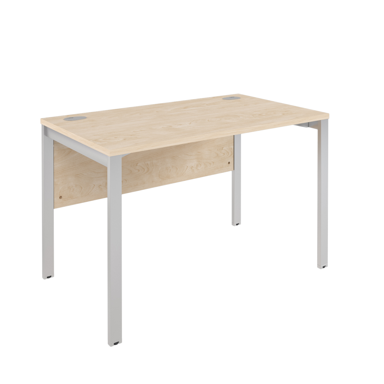 Универсальный рабочий стол для офиса и дома. Стол оснащён металлическими опорами, которые размещены по краям стола. Солидная и прочная столешница толщиной 25 мм. имеет два кабель-канала с декоративными заглушками. Торцы защищены кромкой ПВХ толщиной 2 мм.