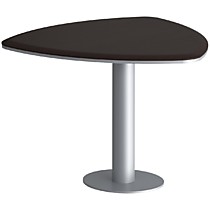 Стол переговоров серии DIONI за которым с комфортом разместится 3 человека. Столешница МДФ в плёнке ПВХ с подложкой из ЛДСП. Общая толщина столешницы 38 мм. Опора круглая металличекая.