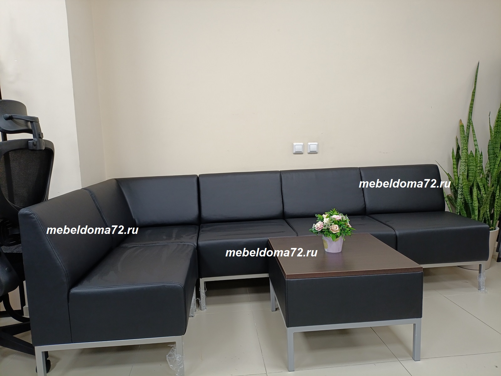 Диван Ганс угловой состоит из 4 модулей, которые можно переставить относительно друг друга. В комплект входит журнальный стол. Корпус журнального стола из экокожи, столешница - ЛДСП толлщиной 16 мм.. Диван имеет металлический каркас из квадратной трубы. Каркас может быть серого или чёрного цвета. Офисную мягкую мебель Ганс можно использовать для оборудования холлов офисных центров и любых больших пространств. Возможно несколько вариантов расстановки углового дивна Ганс!