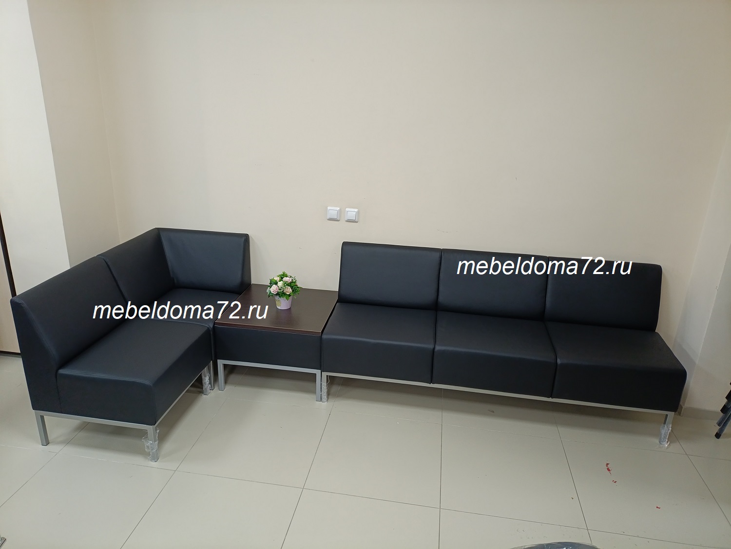 Диван Ганс угловой состоит из 4 модулей, которые можно переставить относительно друг друга. В комплект входит журнальный стол. Корпус журнального стола из экокожи, столешница - ЛДСП толлщиной 16 мм.. Диван имеет металлический каркас из квадратной трубы. Каркас может быть серого или чёрного цвета. Офисную мягкую мебель Ганс можно использовать для оборудования холлов офисных центров и любых больших пространств. Возможно несколько вариантов расстановки углового дивна Ганс!