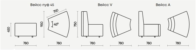 Состав комплекта: пуф 45 + V(2 шт) + A