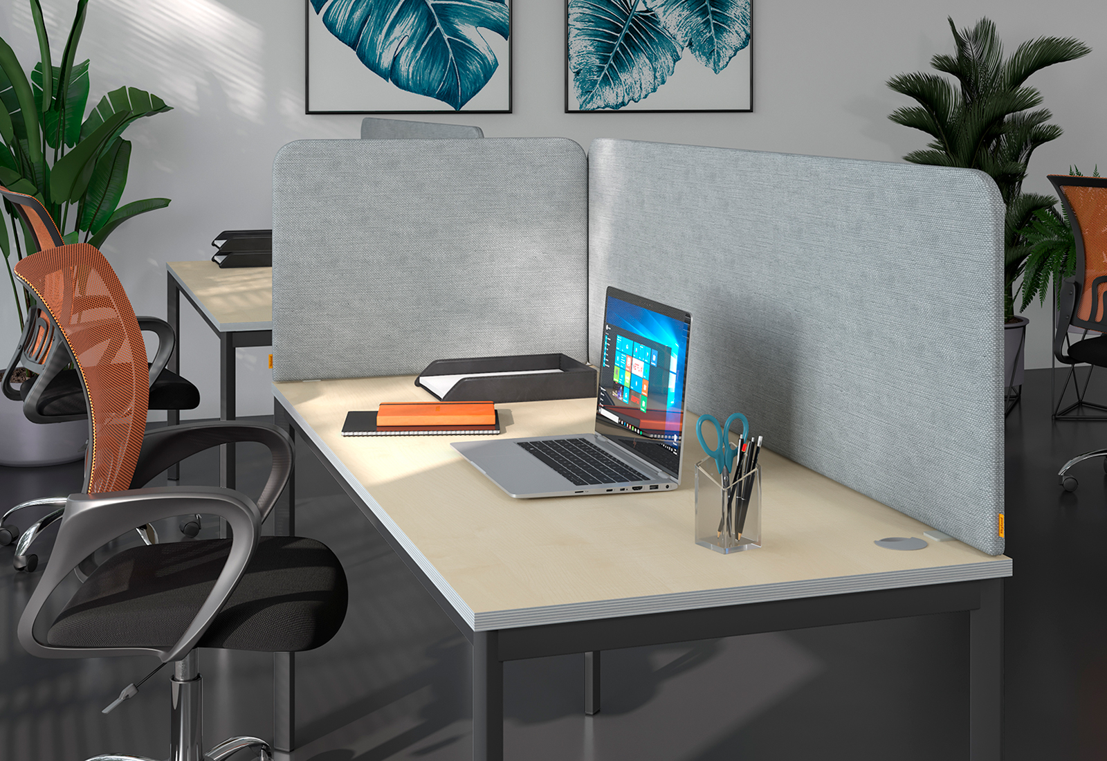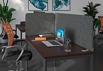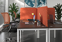 Экран фронтальный звукопоглащающий выполнен на основе ЛДСП и звукопоглашающего слоя пенополиуретана с каждой стороны. Внешняя обивка - мебельная ткань из 100% полиэстера.Экран комплектуется кронштейнами. Перегородки выполняются во всекх цветах коллекции.
