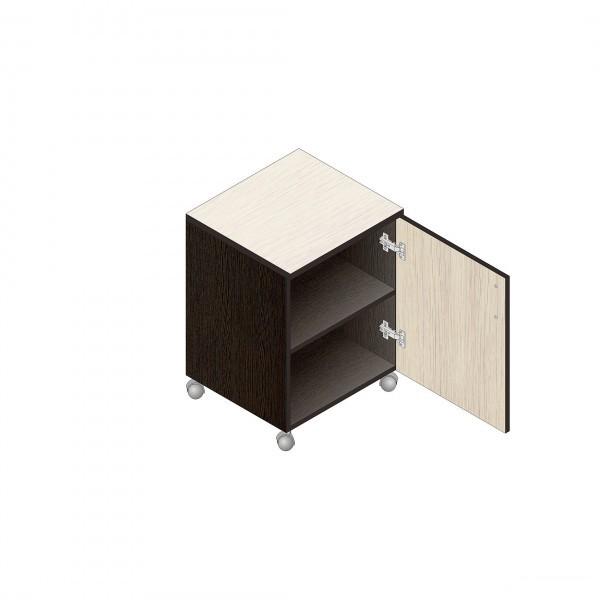 Тумба офисная Р.Т-1 продаётся отдельно и в составе модульной коллекции Референт. Тумба установлена на колёсные опоры и легко перемещается. За распашной дверью расположена полка. Топ тумба изготовлен из ЛДСП 22 мм., корпус - ЛДСП 16 мм.