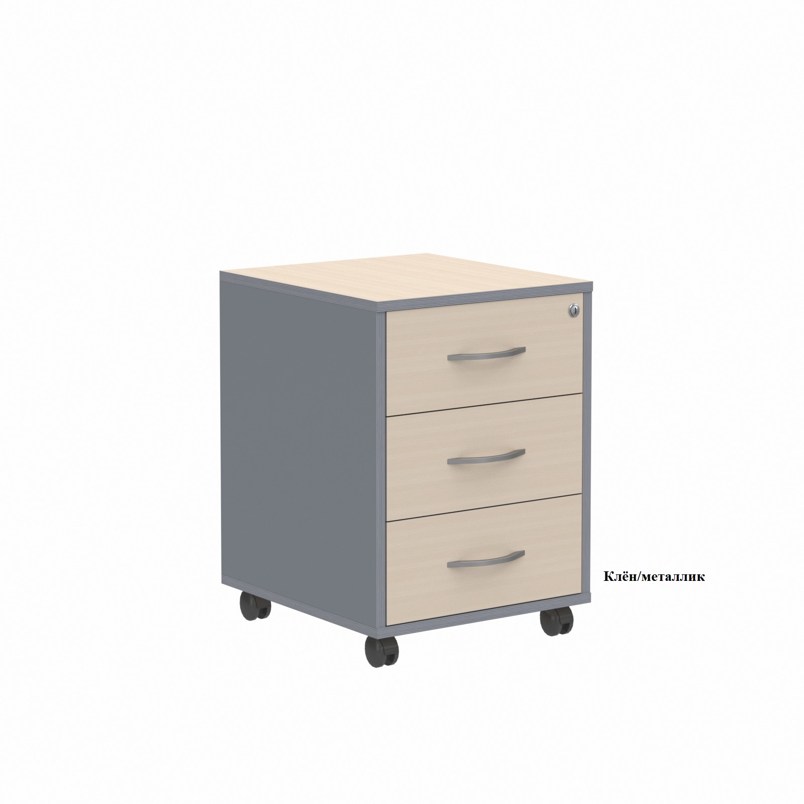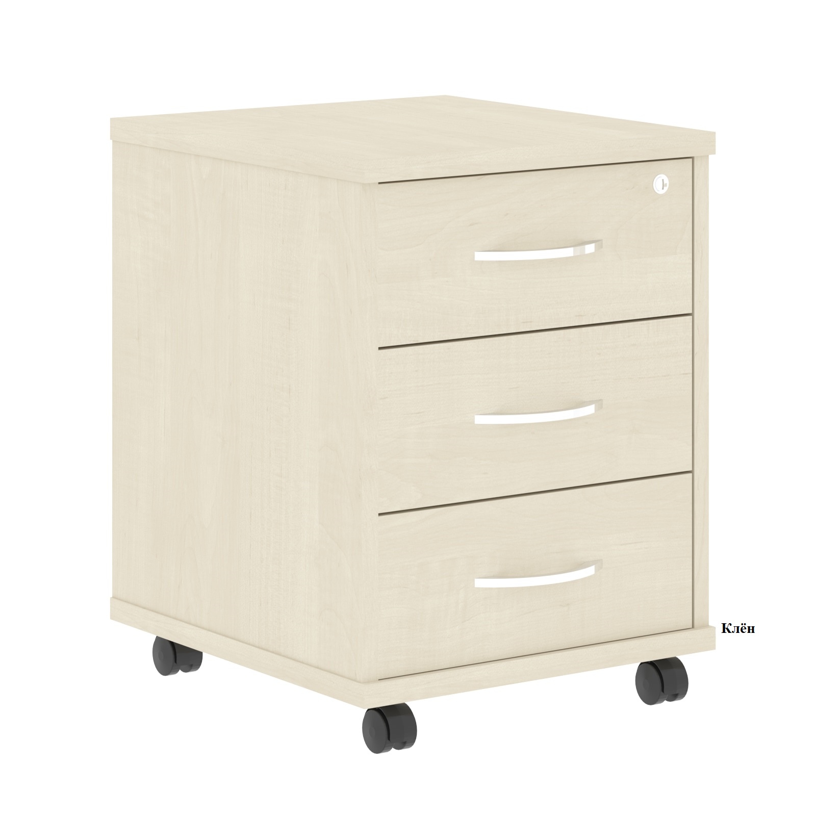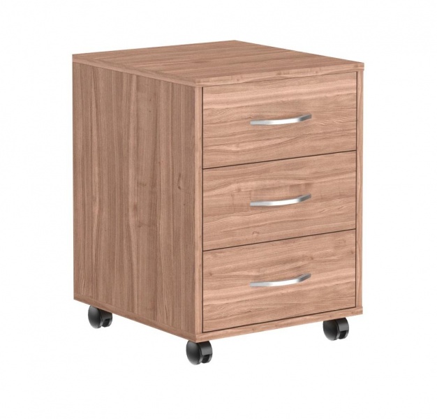 Тумба подкатная ТМ-3 с 3 выдвижными ящиками. Верхний ящик закрывается на ключ. Ручки металлические. Тумба Имаго ТМ-3 может использоваться самостоятельно или в сочетании с другими предметами серии офисной мебели Имаго.