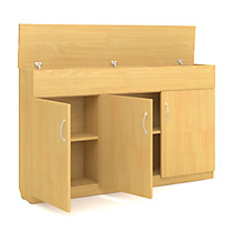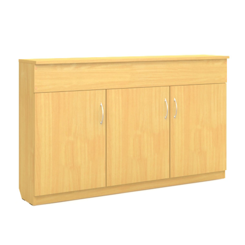 Тумба Лц.ТА для офиса и учебных заведений. Тумба имеет 3 распашные двери одинакового размера. За ними полка. Сверху закрытое отделения для хранения плакатов, учебных материалов и т.д.